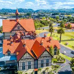 Située près du lac du même nom, l’un des 16 lacs d’origine volcanique qui sont parsemés alentour, la ville de Rotorua est au coeur de l’une des régions volcaniques les plus actives de la planète. Les nombreux parcs et vallées thermales abondent de phénomènes volcaniques et autres merveilles naturelles. Rotorua est également un haut-lieu de la culture Maori, omniprésente avec spectacles culturels, boutiques d’artisanat et villages traditionnels.