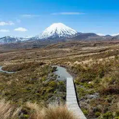 Continuation vers le parc national de Tongariro, constitué de 3 volcans toujours actifs dont les pentes skiables se couvrent de neige en hiver. Les volcans du plateau de Tongariro ont été rendu mondialement connus par les films du Seigneur des Anneaux qui y ont été filmés.