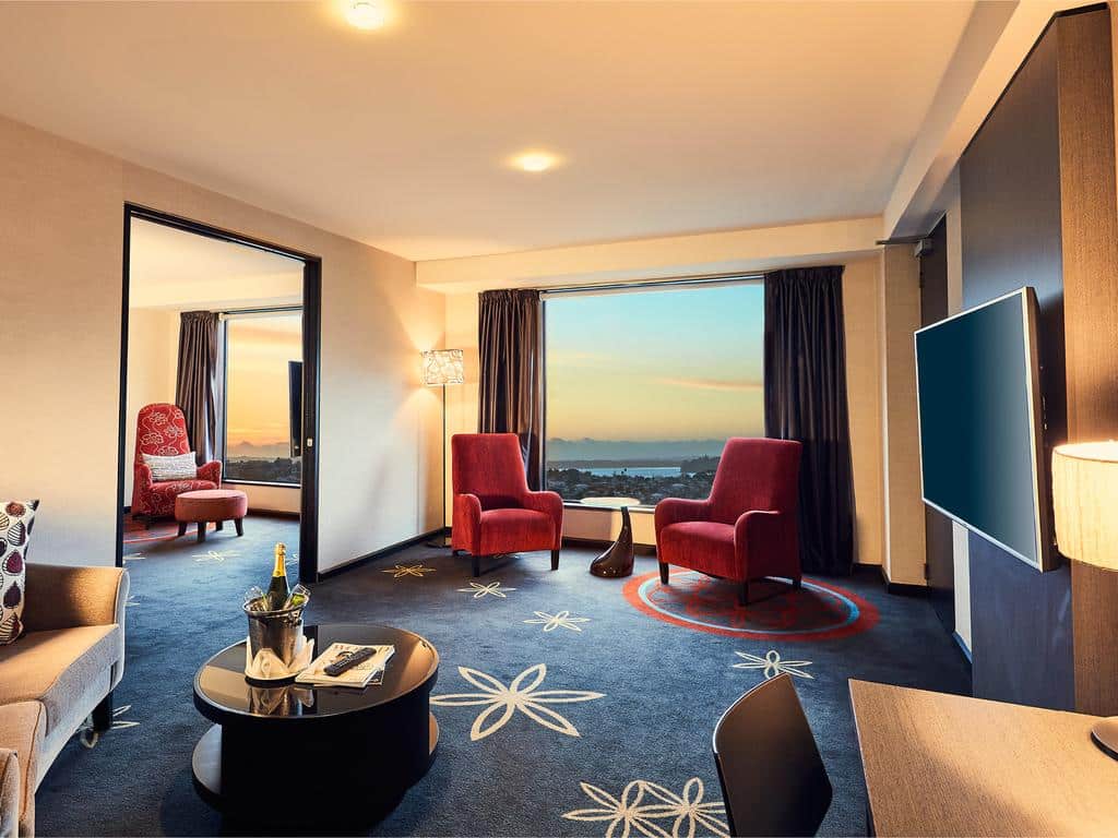 Le SkyCity Hotel se trouve dans le quartier central des affaires à Auckland. Il est situé à proximité du casino SkyCity et de la célèbre Sky Tower. L’établissement dispose de chambres et suites aménagées avec goût. Elles sont équipées d’une télévision à écran plat et d’une connexion Wi-Fi gratuite.Le casino SkyCity est ouvert 24h/24. Ce dernier est doté d’un théâtre organisant des spectacles et de plus de 20 restaurants, bars et cafés. Depuis la Sky Tower vous pourrez profiter d’une vue à couper le souffle sur la ville d’Auckland et ses environs.Les chambres du SkyCity Hotel disposent également d’une salle de bains privative, de la climatisation et d’un minibar. L’établissement assure un service d’étage 24h/24. Les chambres offrent une vue sur les toits de la ville ou sur la cour de l’hôtel. Le petit déjeuner est proposé tous les matins sous forme de buffet par le restaurant Fortuna situé au 3ème étage de l’hôtel. Vous pourrez également y découvrir la cuisine néo-zélandaise et de nombreux plats internationaux.