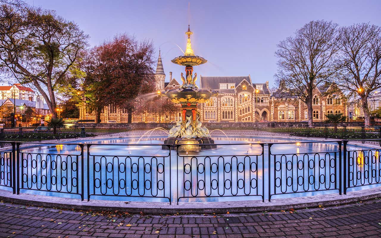 Connue comme la « Ville Jardin », Christchurch est une des plus anciennes villes du pays mais les tremblements de terre dévastateurs de 2011 en ont sévèrement endommagé le patrimoine historique. Aujourd’hui, Christchurch est une ville originale, pleine de contrastes et d’effervescence, avec des espaces verts aménagés et une architecture innovatrice selon un plan urbaniste de « ville dans un jardin ». Des bâtiments modernes et originaux s’érigent à côté d’édifices de style néo-gothique qui ont pu être rénovés. L’âme de la ville et l’esprit chaleureux des habitants restent intacts. La ville est aussi célébrée pour ses superbes jardins, ses parcs et ses musées.
